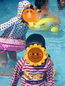 当然、ラッシュガードも着て、足首までの水着着用でね。